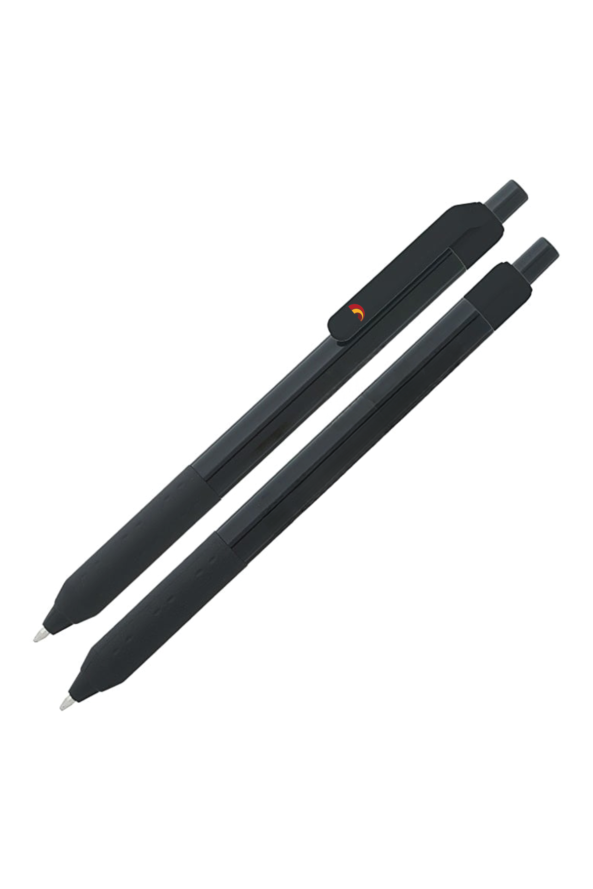 Retractable style pen with a co-molded soft grip, and a full color imprint on clip.